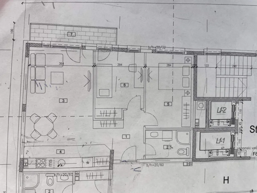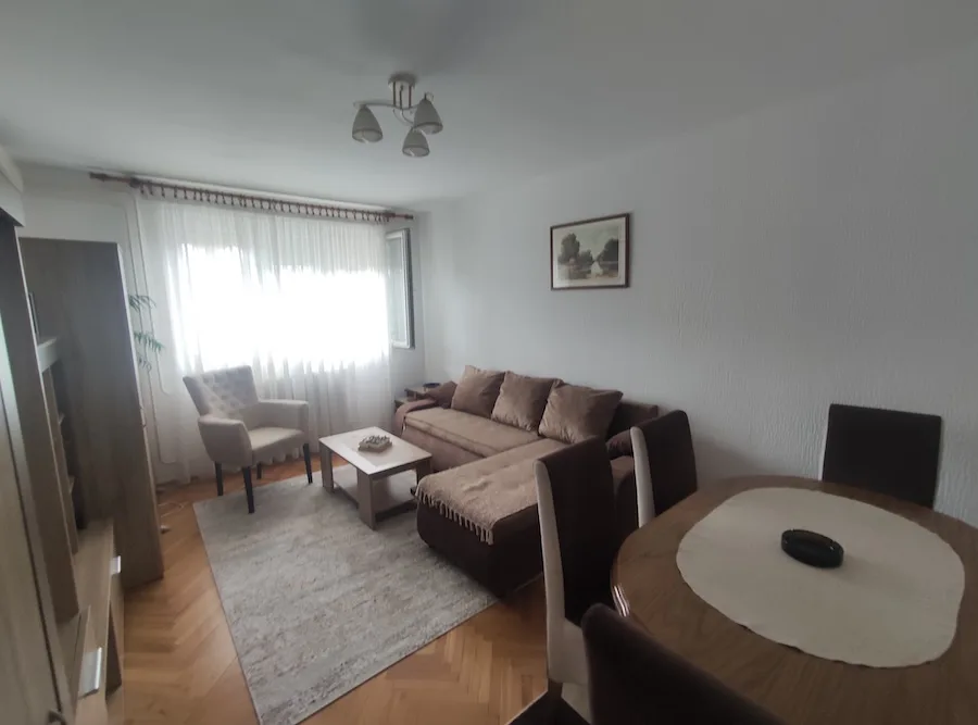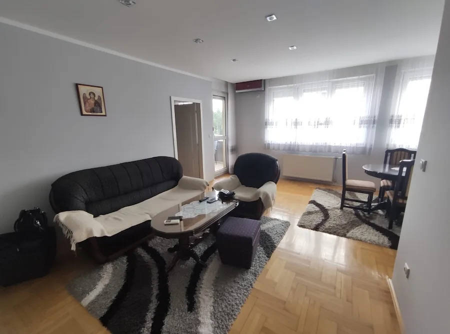 Struktura stana: 2 spavaće sobe, dnevni boravak sa kuhinjom i trpezarijom, hodnik, kupatilo, lođa.