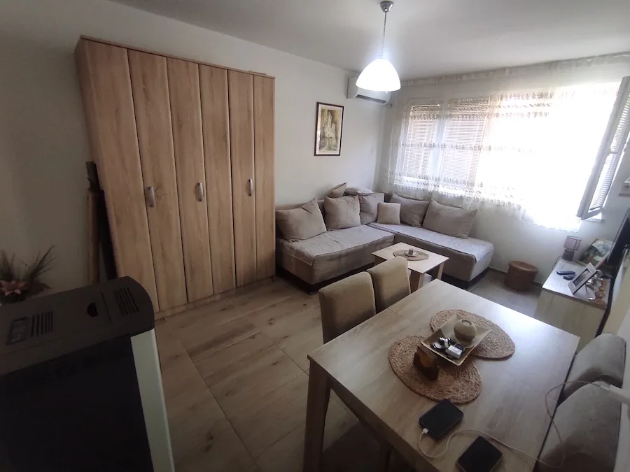 Struktura stana: Dnevni boravak sa kuhinjom i trpezarijom, 2 spavaće sobe, kupatilo, hodnik, lođa.